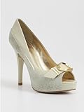 These chic pumps have a sleek style with a sophisticated edge. Peep toe pumps feature logo print, patent trim and logo detail on toe. 4 ½" high heel 1" platform Material: Fabric and patent Women's Shoes > Dress Read more