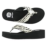 The Precedent thong sandals by Yellow Box features synthetic straps with rhinestone accents, cross rhinestone accent on the vamp, fabric toe post, round toe, ¼" platform, EVA midsole, synthetic sole and a 2 ½" wedge. Read more