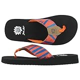 The Ray thong sandals by Yellow box features synthetic straps with a fun, orange and blue zebra print, round toe, fabric toe post, EVA footbed cushions every step, 3/5" platform, synthetic sole and a 1" height. Read more