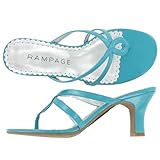 The Moira thong sandal by Rampage features a strappy, synthetic upper with a loopy design at the vamp, slighty squared toe, lightly cushioned insole, synthetic outsole and a 2 1/2" wide heel. Read more