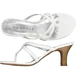 The Moira thong sandal by Rampage features a strappy, synthetic upper with a loopy design at the vamp, slighty squared toe, lightly cushioned insole, synthetic outsole and a 2 1/2" wide heel. Read more