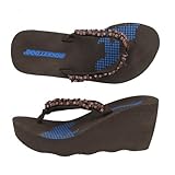The Wonder thong wedge sandal by Rocket Dog features smooth and synthetic straps with beaded details adorning the straps, an open and round toe, smooth lining, EVA footbed provides supreme comfort, 2 3/4" platform, synthetic out sole and a high wedge heel Read more